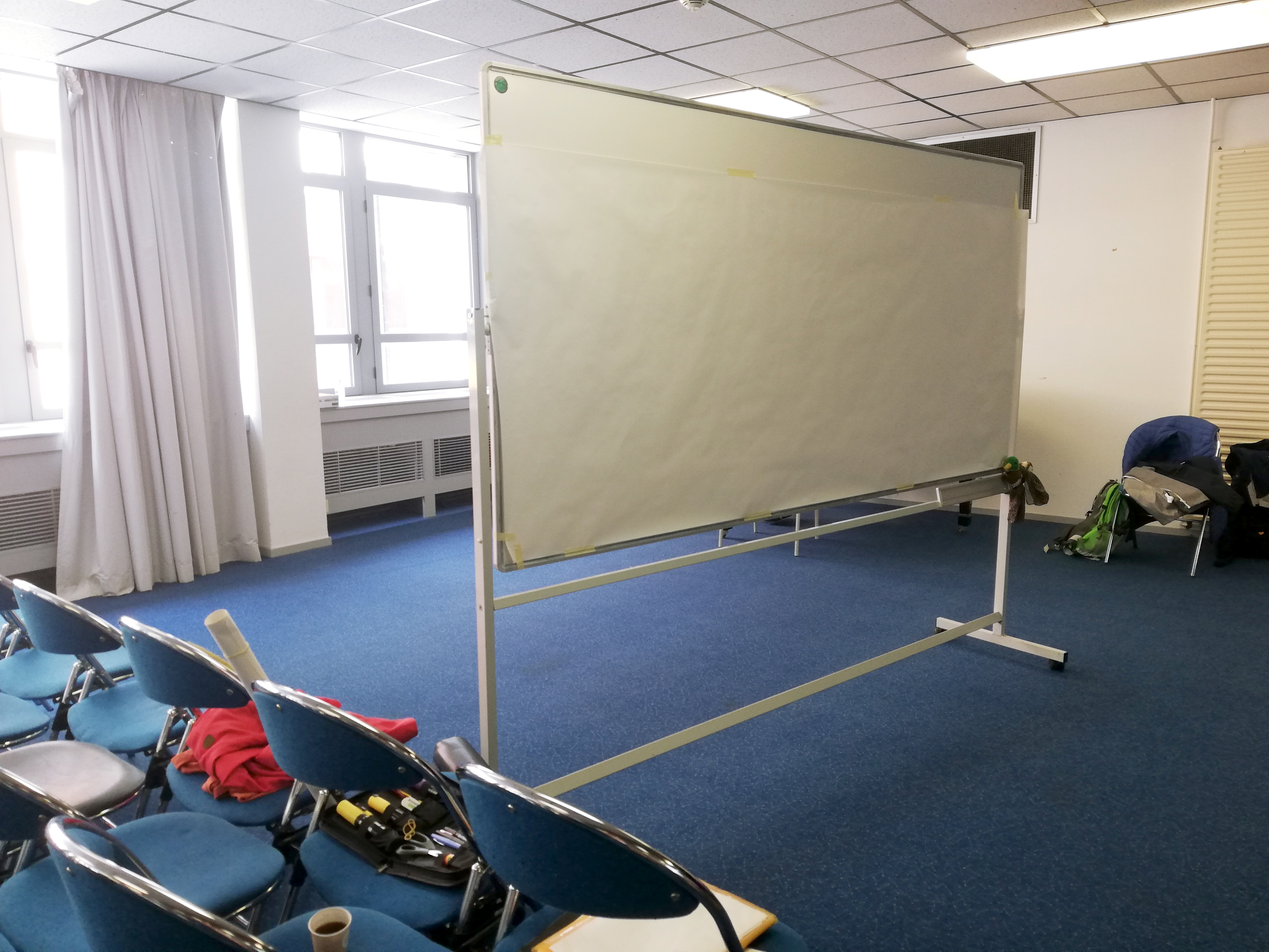 Le jour J, tout commence avec une fresque blanche dans un coin de la salle.