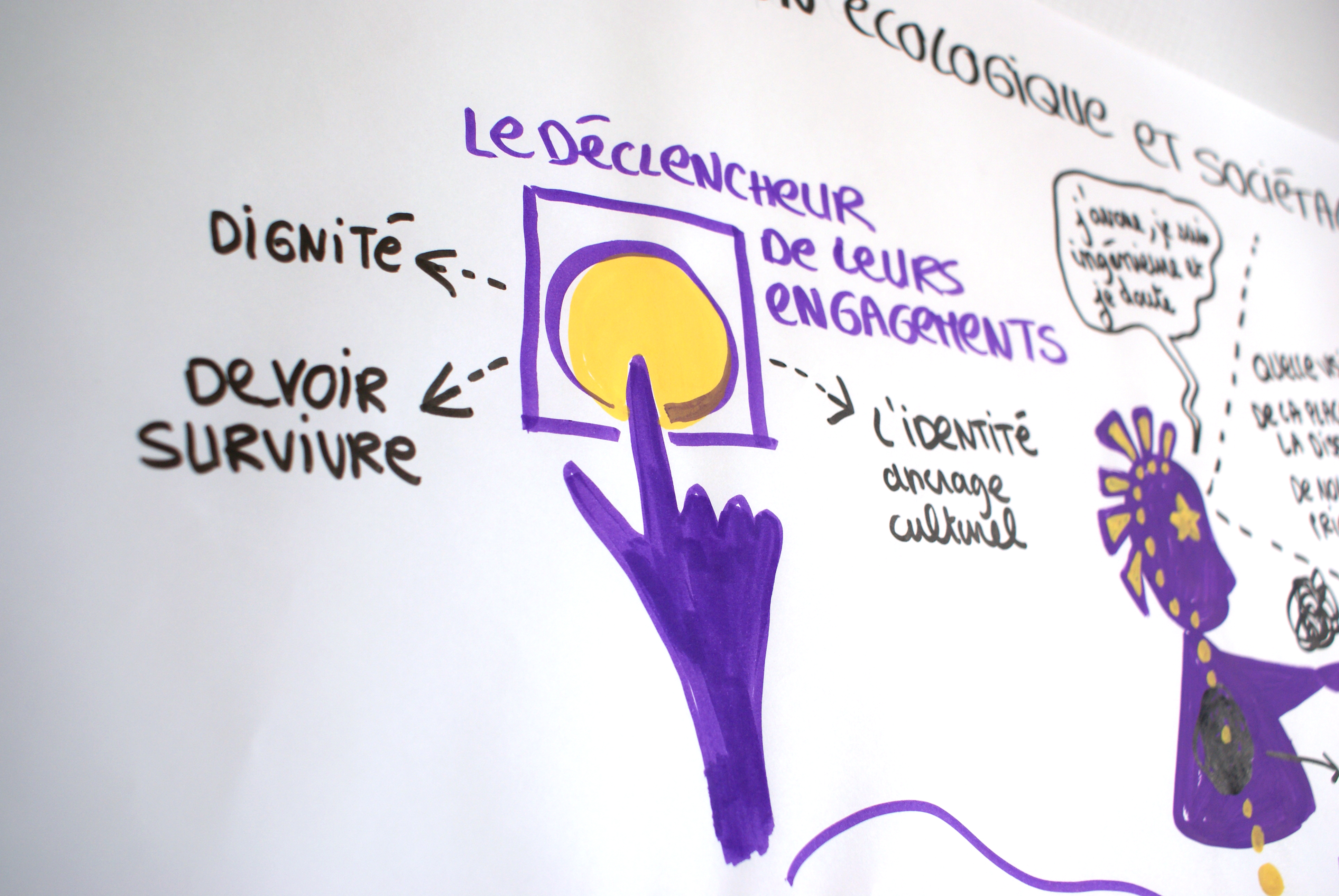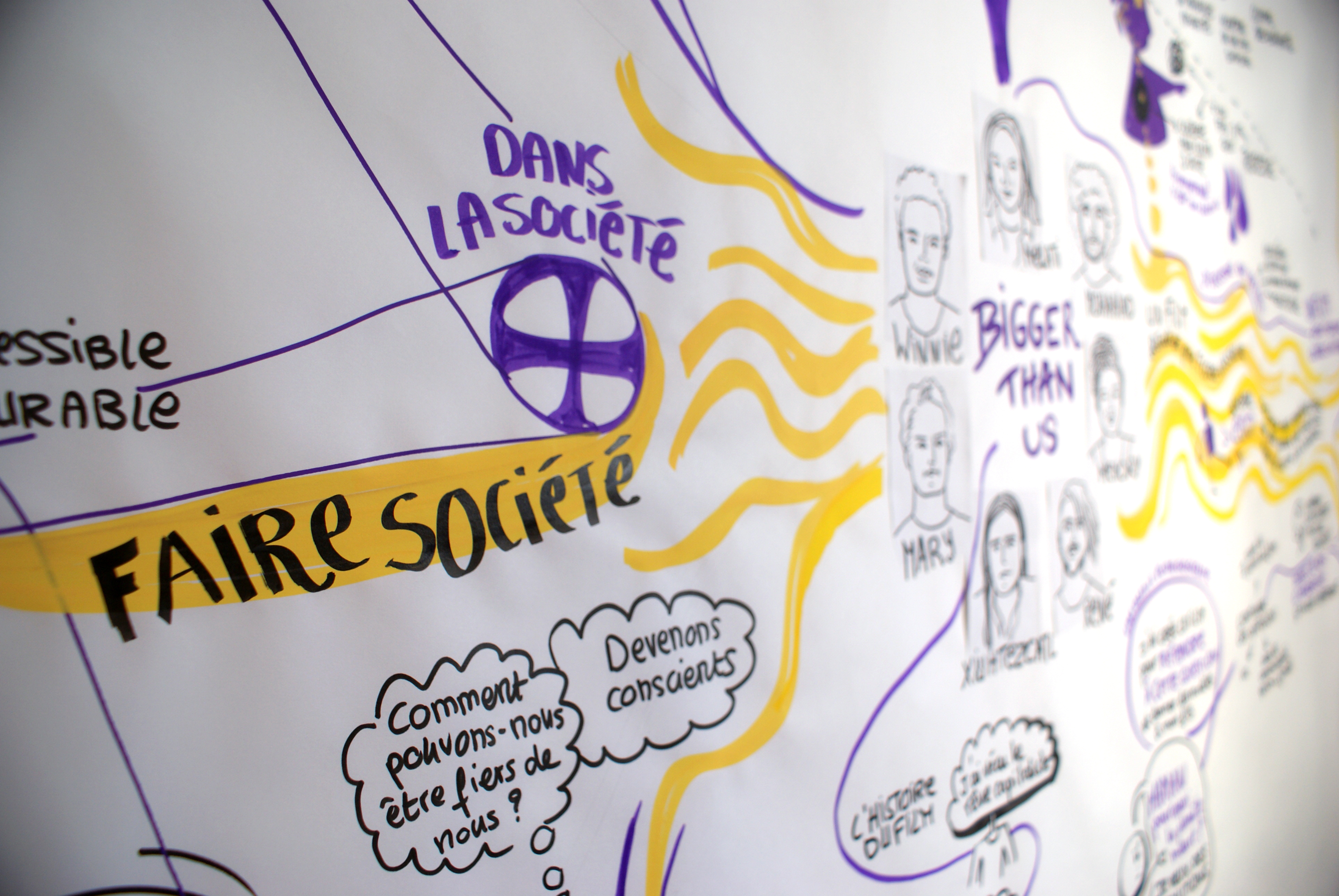 Sur la fresque on retrouve ce qui se dit et aussi de ce qui se vit et qui se voit moins ; émotions, énergie haute ou basse.