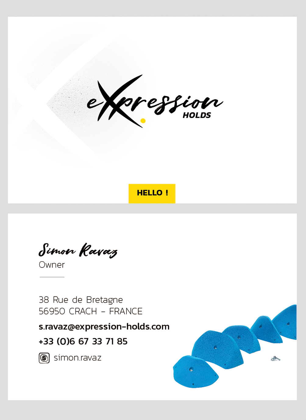 Simon Ravaz, le fondateur d'Expression Holds, souhaitait refondre son logotype et créer son identité visuelle. L'univers graphique s'est ensuite décliné sur les supports de communication et les murs d'escalade.
