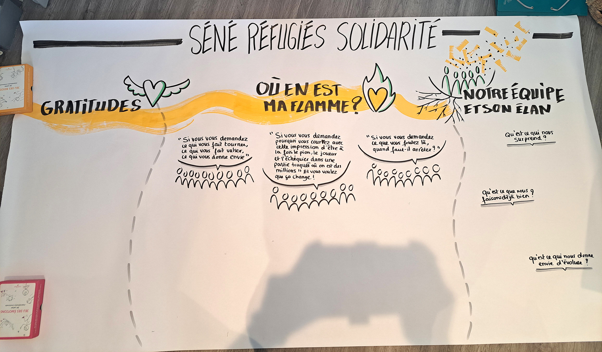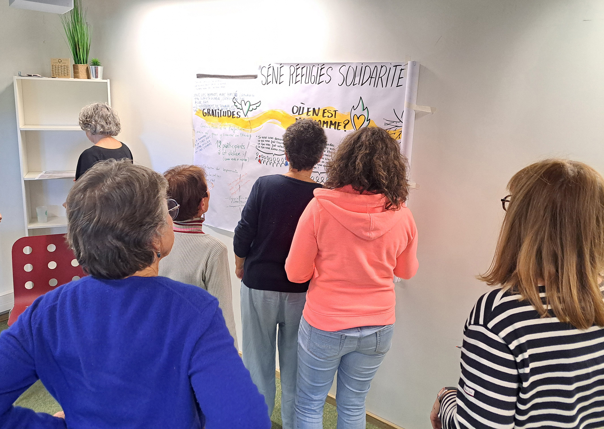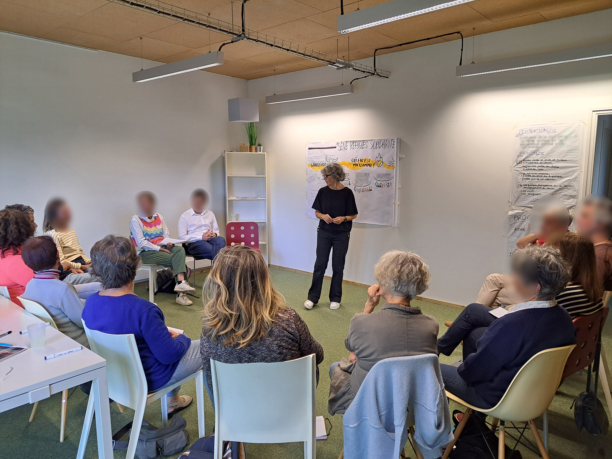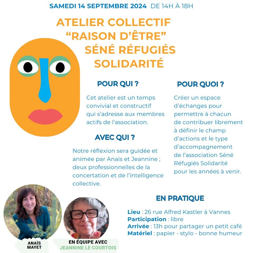 Avec Jeannine Le Courtois, facilitatrice, nous avons conçu et facilité un moment collectif pour ces bénévoles de l'association Séné réfugiés solidarité.
