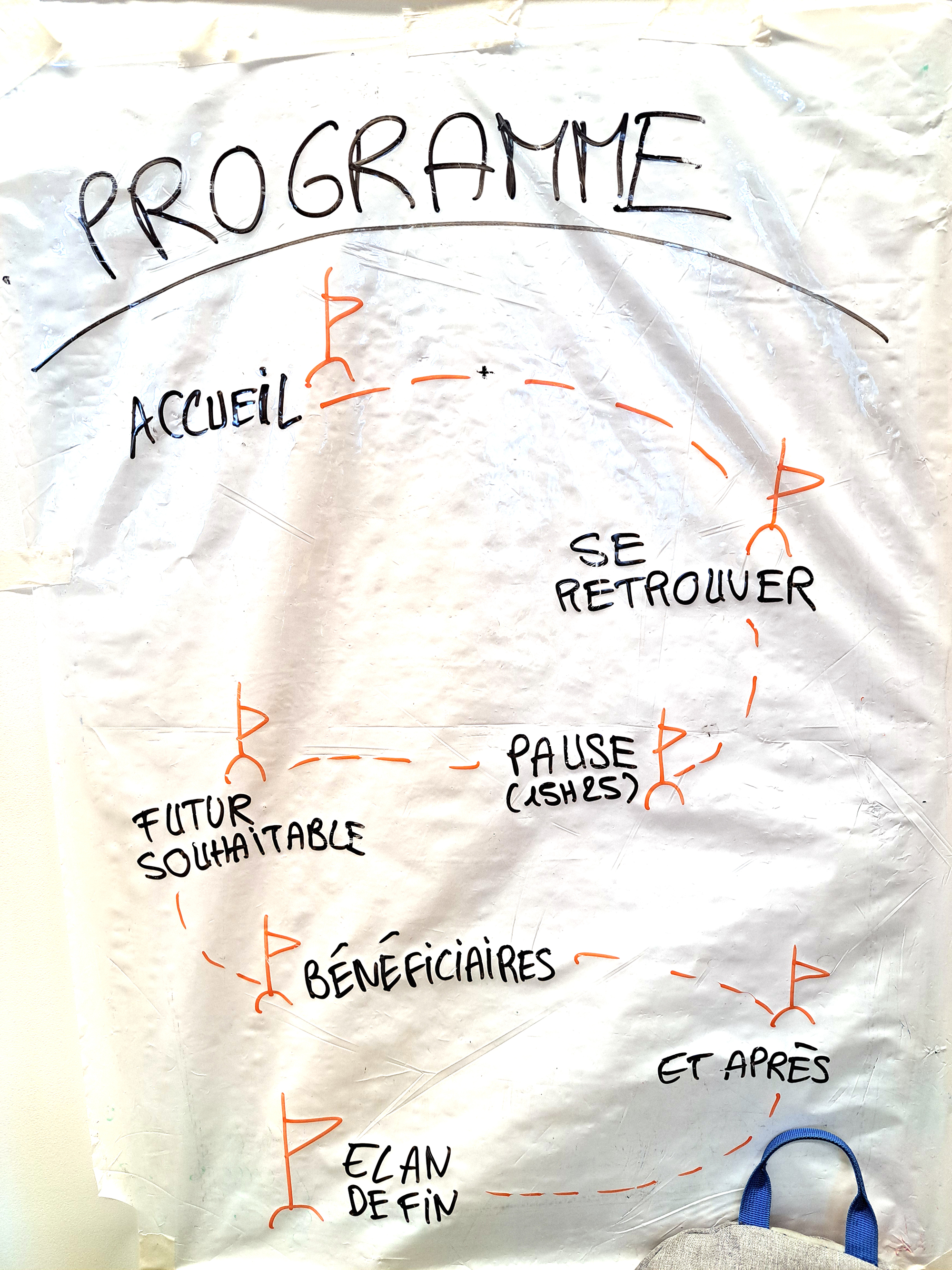 Eoute de la chanson «La valse des gens» de Bob et Flanaghan. Chaque participant s'est positionné sur la fresque pour partager sa relation à l'association.