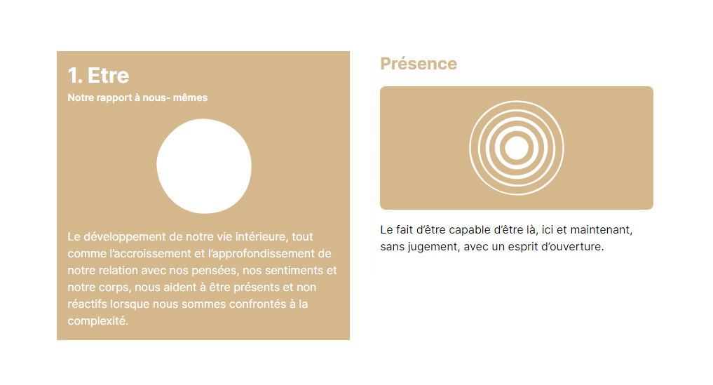 Voici les terrains d'exploration que nous avons proposé aux participants durant la matinée (terrains issus des Objectifs de développement intérieurs) :