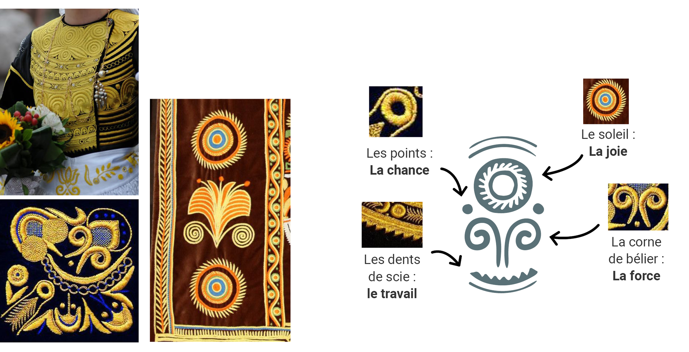 Le pictogramme et l'illustration utilisent la symbolique des broderies des costumes traditionnels Bretons. L'idée étant de créer un univers de signes qui évoquent la culture Bretonne.