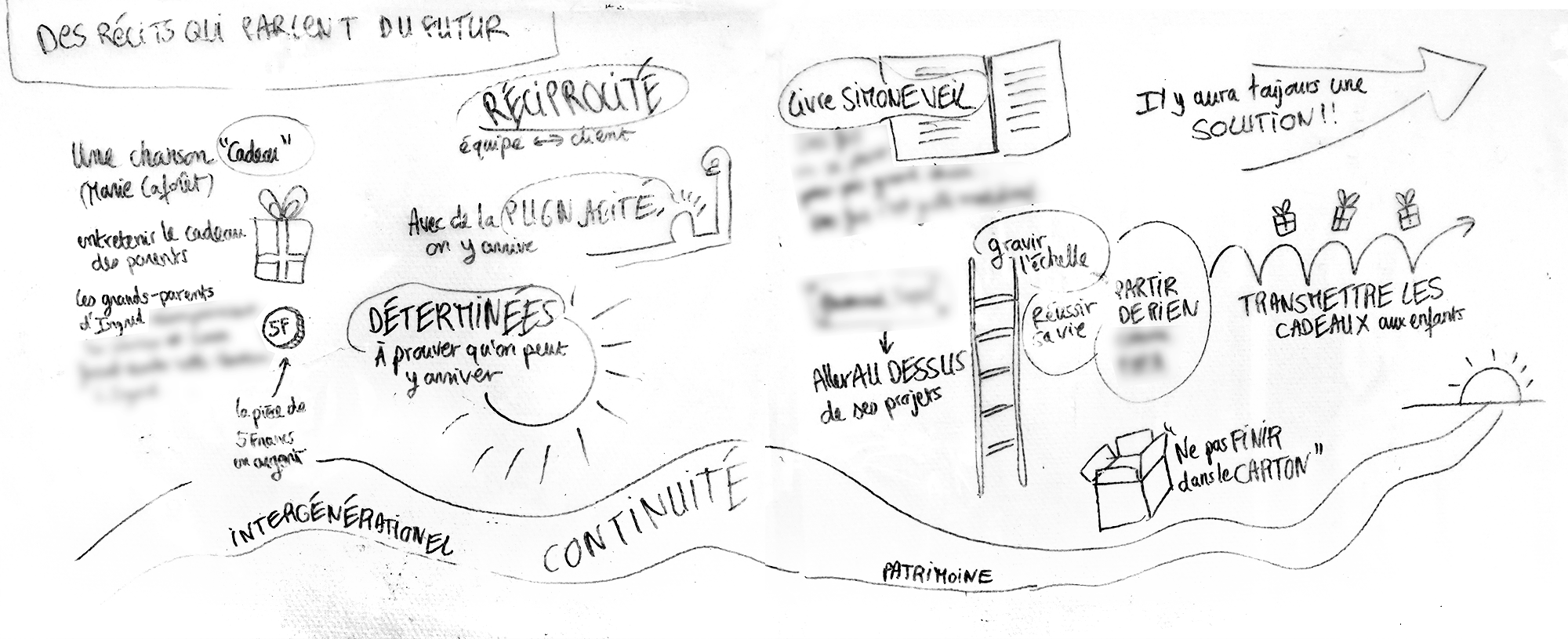 Facilitation graphique (dessin en direct au veleda) en écoutant Sonia et Ingrid raconter leur futur